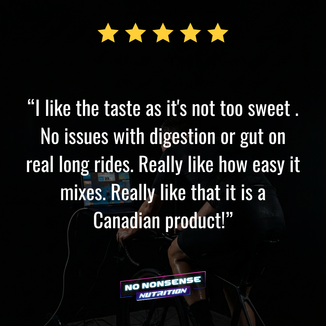 High-carb and electrolyte drink mix made in Canada. Real numbers, honest price.